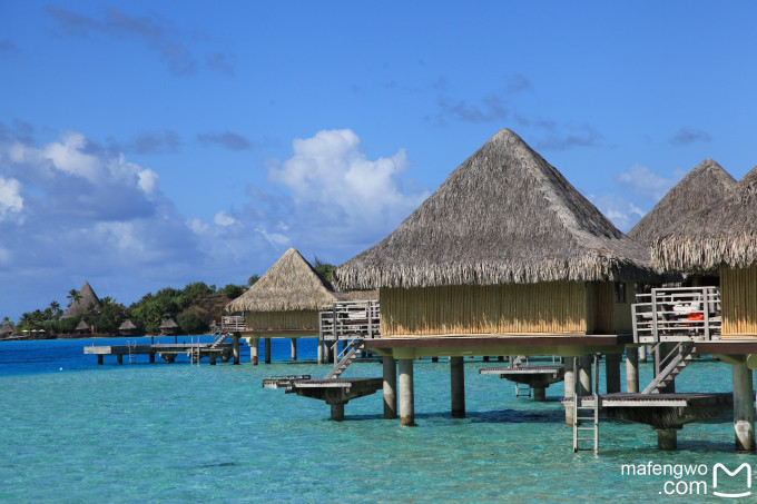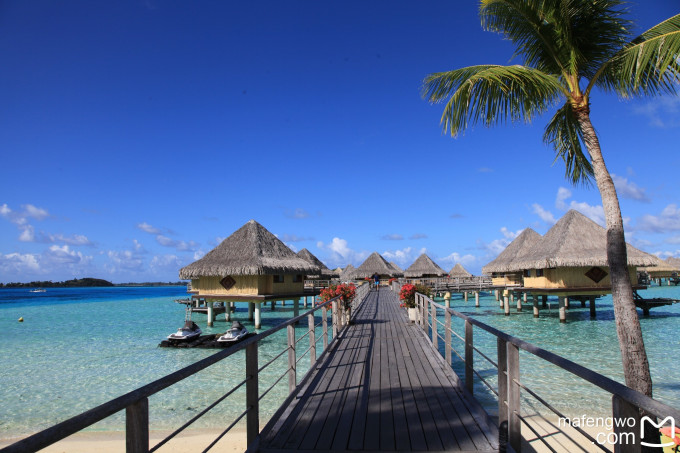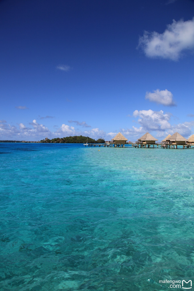 很多人都說來到法屬玻里尼西亞, 一定要來BORA BORA, 起初我還滿懷疑的. 但當我親眼看到BORA BORA的海水竟然可以這麼剔透, 這麼藍, 這麼漸層, 我才真的信了"不來BORA BORA等於沒來過 大溪地"這話. 那潟湖漸層海水映著天空藍, 天邊還掛著幾朵白雲, 海面點綴著小船, 碼頭延伸入海帶出眼前美景, 只能說人生見過這景致, 大概很難再找到比這更美的海景了.