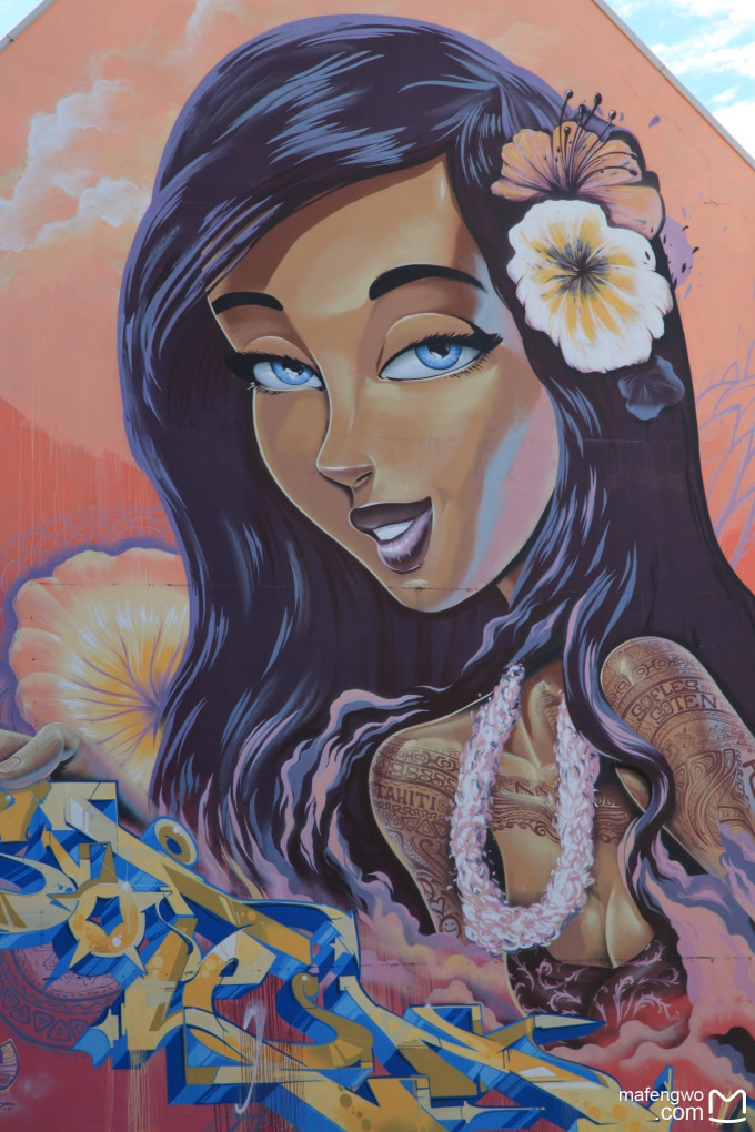 假期的最後一天回到了PAPEETE市區, 這不大的市區裡到處都是大片壁畫, 算是在平凡中創造了些看點,看完這些壁畫, 可以到傳統市場去逛逛黑珍珠等特產,還能買買當地人吃的 三明 治, 炸春捲, 綜合果汁, 至於晚上港口邊的夜市餐車, 賣的多數是中式食物, 且要價不算便宜, 如果對中式食物沒特大偏好倒是可以看看就好.